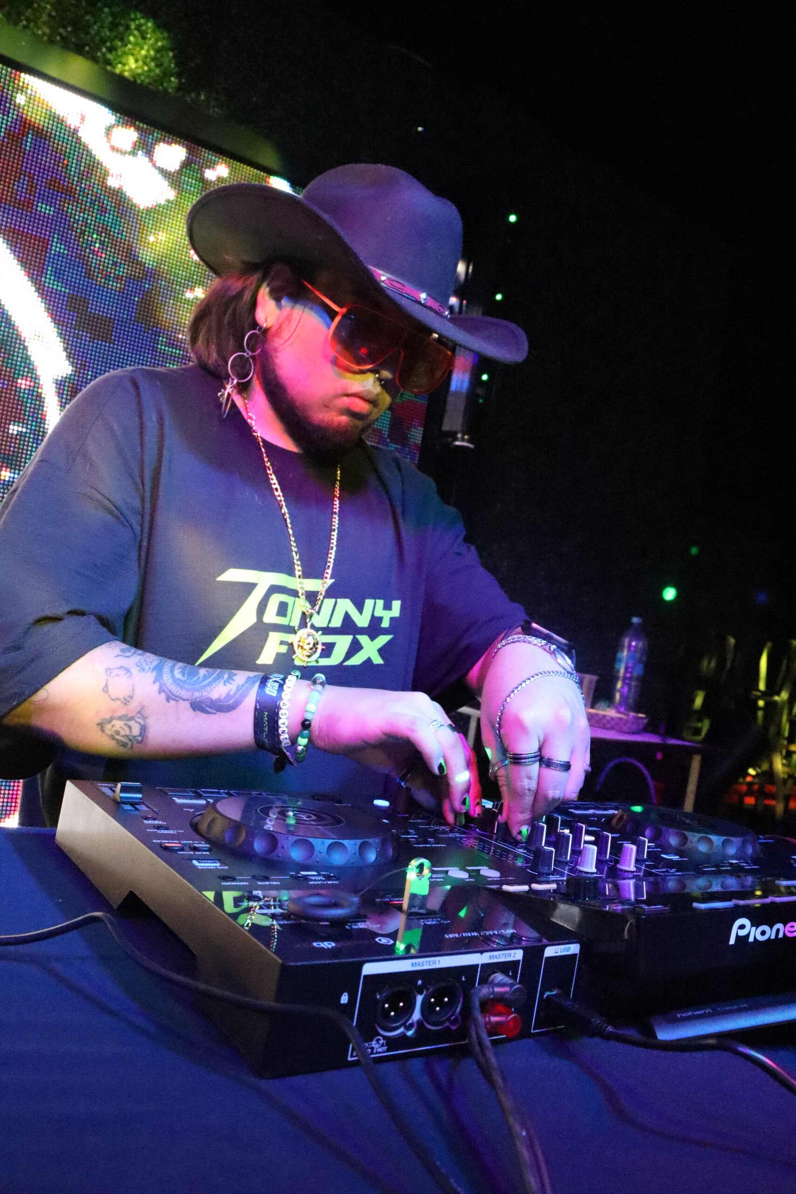 Tonny Fox trabaja en CDJs Pioneer (2000NXS2 o 3000) con mezclador DJM-900NXS2 o superior. Sus USB están preparados en Rekordbox. Requiere monitores activos de alta fidelidad y retorno limpio. También puede adaptarse a controladores compatibles.